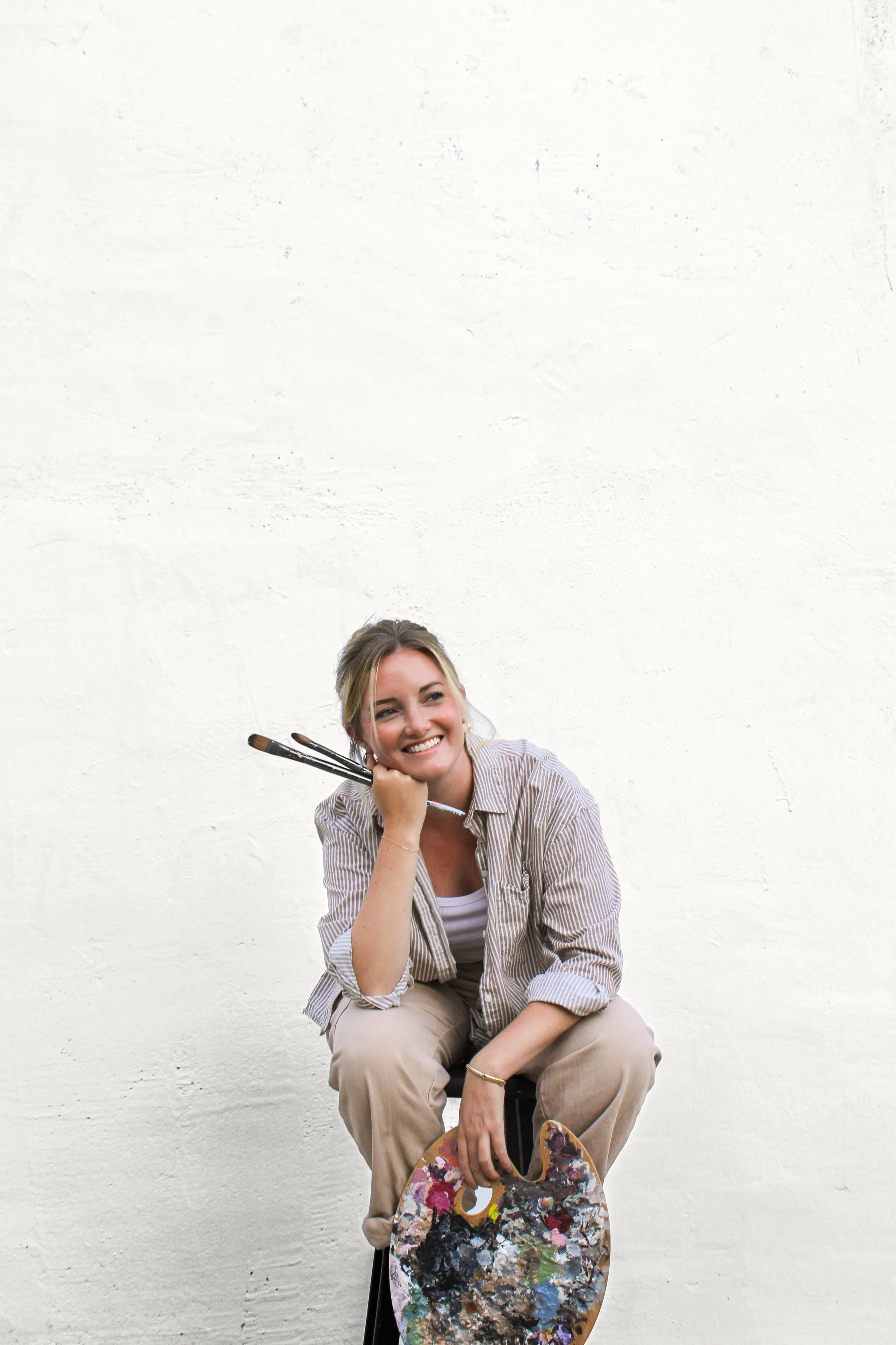 Outside the studio, I’m a lover of the outdoors—picnics, camping, fresh flowers, and lake days. You’ll often find me wandering vintage shops and farmers markets, taking photos, traveling, enjoying a glass of wine at happy hour, and always seeking a little whimsy.